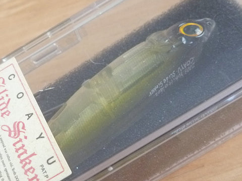 The body of the Megabass DOG-X Jr. COAYU is used and the injection core that molds the internal structure is replaced. This is a complete tuning and modification of volume and structure that only ITO Engineering could make possible. The Slide Sinker, as its name suggests, can also be used as a "top water pencil" by twitching the bait at high speed. If the retrieve is stopped immediately, the lure will "slide and fall." If the retrieve is twitched quickly, the lure will "dogwalk in the water just below the surface. This underwater dogwalk is different from the side-to-side swiveling motion of a pencil bait on the surface of the water, and it makes a speedy quick turn and slide from side to side. It is a three-dimensional escape dart action that quickly hops up to the surface of the water. These are the unique impacts of the slide sinker, which are not found in conventional pencil baits. This is a new concept lure that overturns the concept of small pencil baits, enabling an astonishingly long distance cast, and reproduces the power of the no-sinker soft stick baits that have been used just below the surface of the water as a hard bait with two triple hooks.