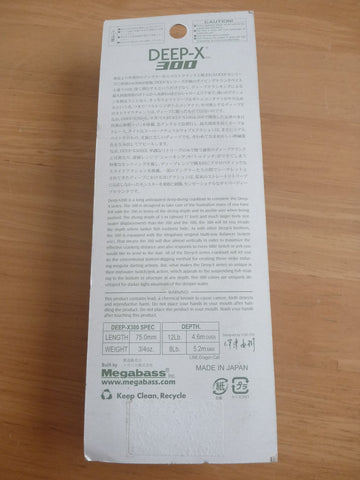 The DEEP-X300 is a long anticipated deep-diving crank bait that adds dimension to the DEEP-X series. With a diving depth of 5m (almost 17 feet) and a much larger body size than the 200 and the 100, the DEEP-X300 will let you invade the depths where lunker fish routinely hide. As with its other DEEP-X brothers, the 300 is equipped with the MULTI-WAY MOVING BALANCER SYSTEM(PAT.). That means the 300 will dive almost vertically in order to maximize effective cranking distance and will also respond to every little twitch or jerk you send to the bait. All of the DEEP-X series crank baits will allow for the conventional bottom-digging method for creating those strike-inducing irregular darting actions, but what makes the DEEP-X series so unique is their mid-water twitch/jerk action, which appeals to the fish at any depth. The 300's colors are uniquely developed for the lower light environment of deeper water.