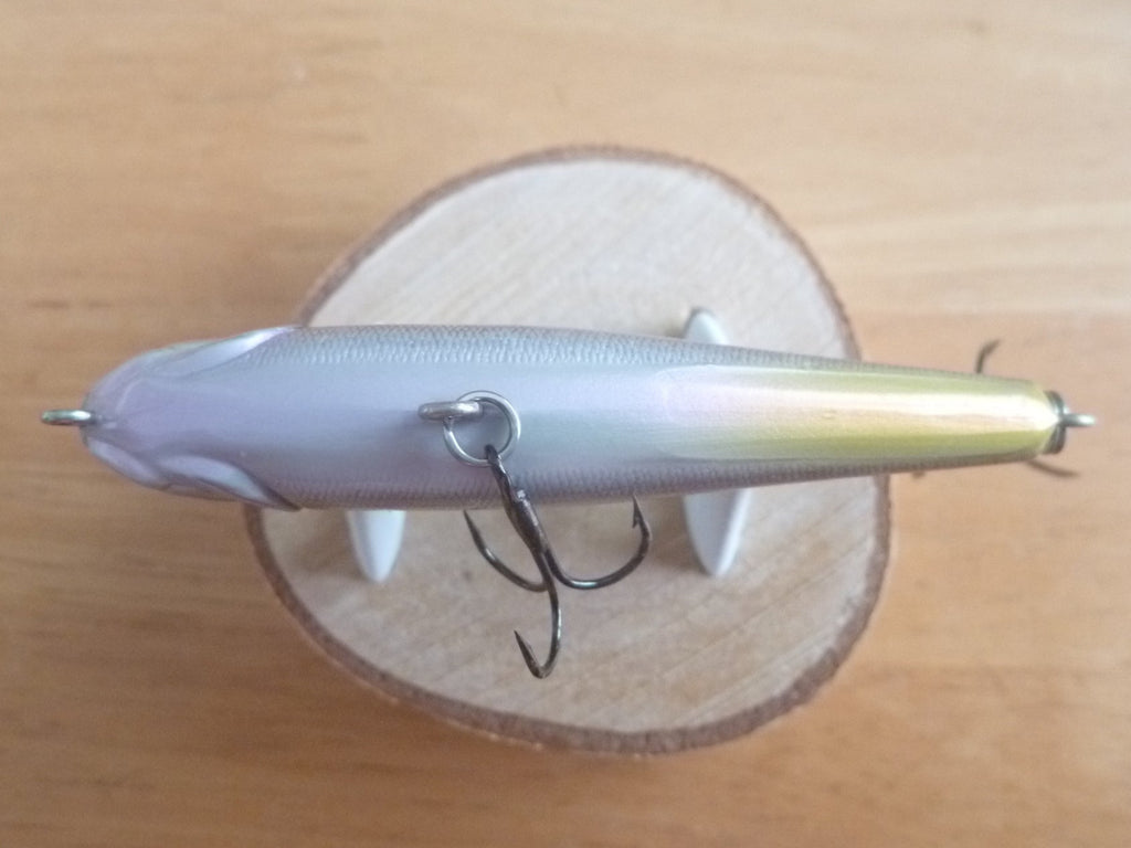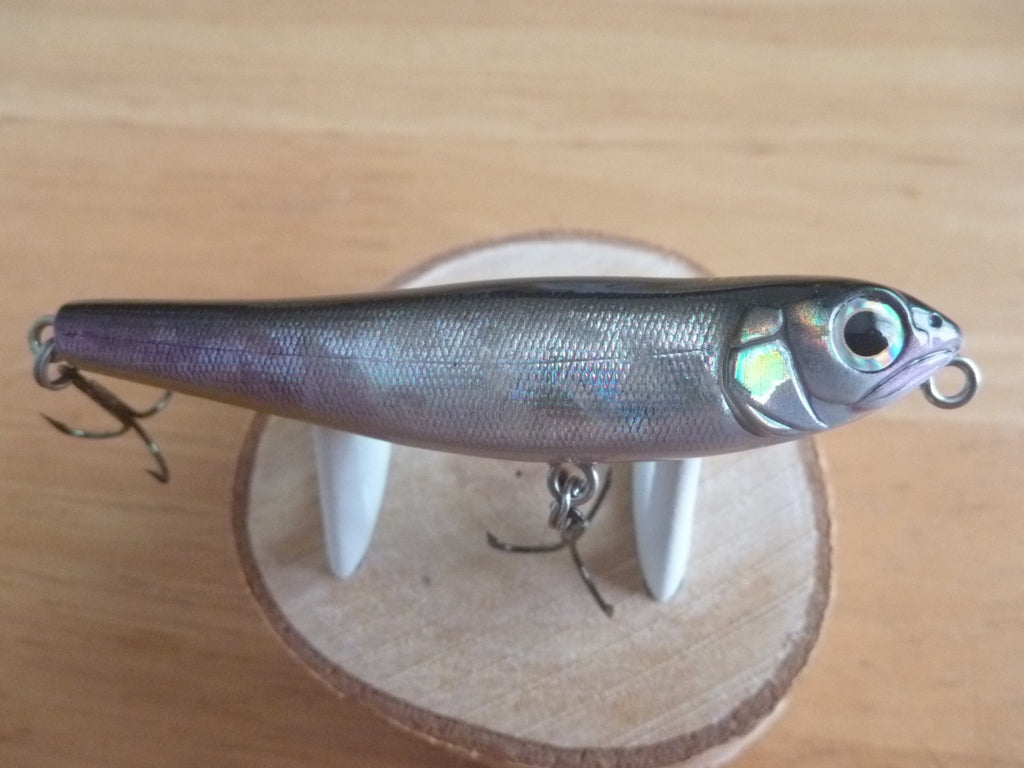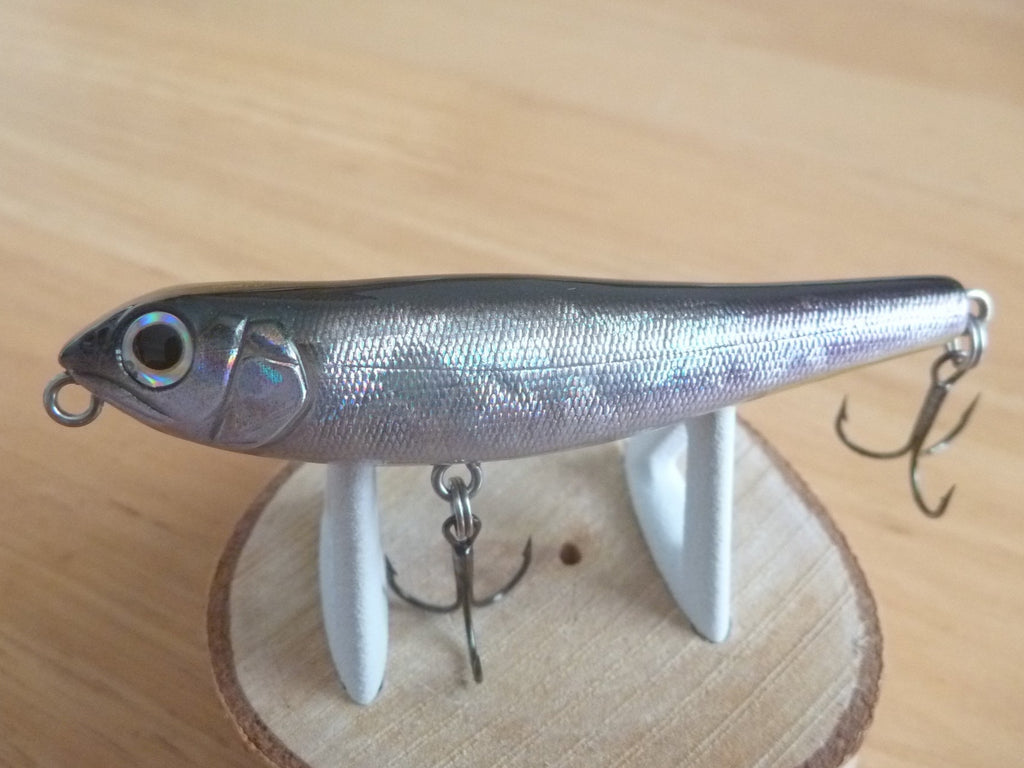In addition to the conventional left and right inertia, front and rear inertial motion is added. When the lure slides to the left and right, it is pushed forward significantly to increase the amount of slide. Super-appeal and panic action unlike that of a small pencil. There is a hole between the two weight booths on the tail part to hit the tops of the two weight balls when the bait hits the water, which generates an elaborate click sound.