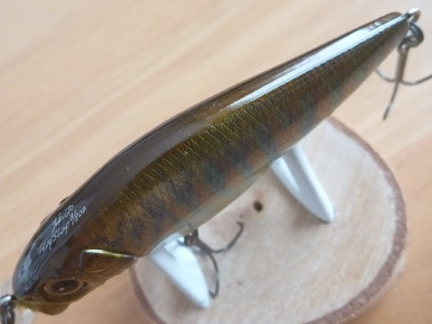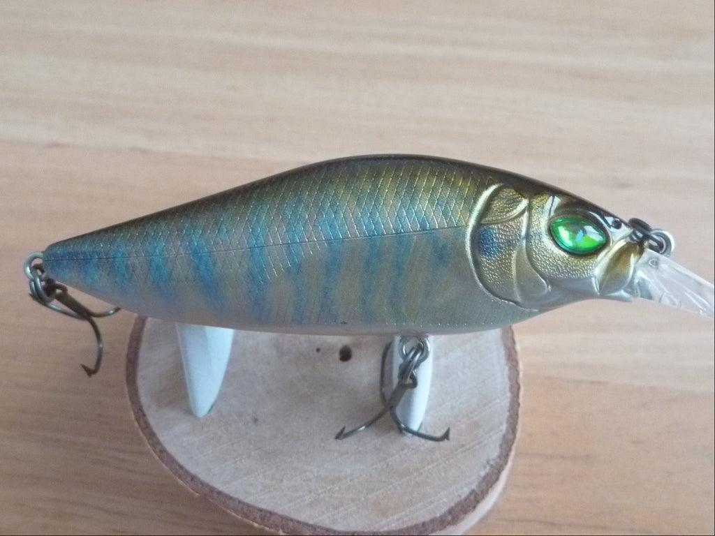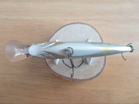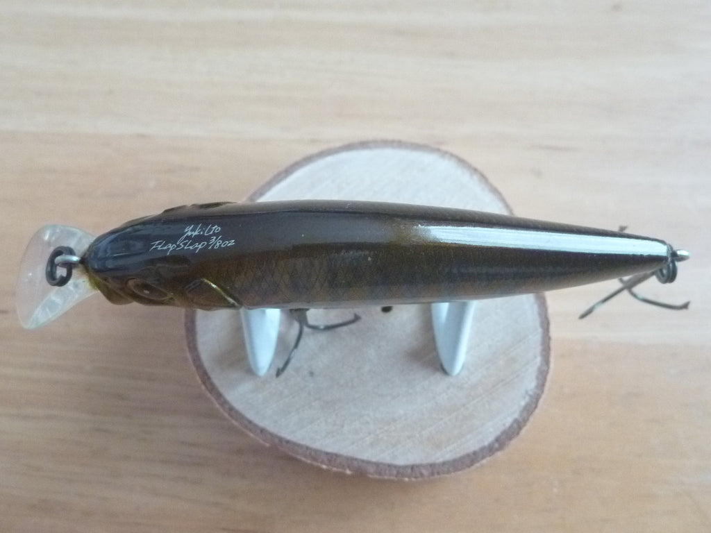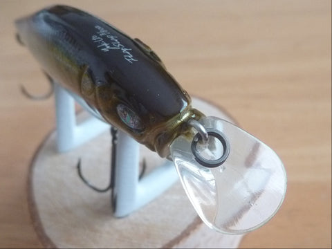 The FLAPSLAP is equipped with a shaft balancer mechanism, which makes it agitate the water while rolling violently from side to side like the VISION95 when reeling. The FLAPSLAP's built-in crankshaft produces a greater action than a straight shaft due to the oscillation of the shaft during roll. The FLAPSLAP's built-in crankshaft is designed to create a greater impact on the FLAPSLAP's unique wide and flat body.