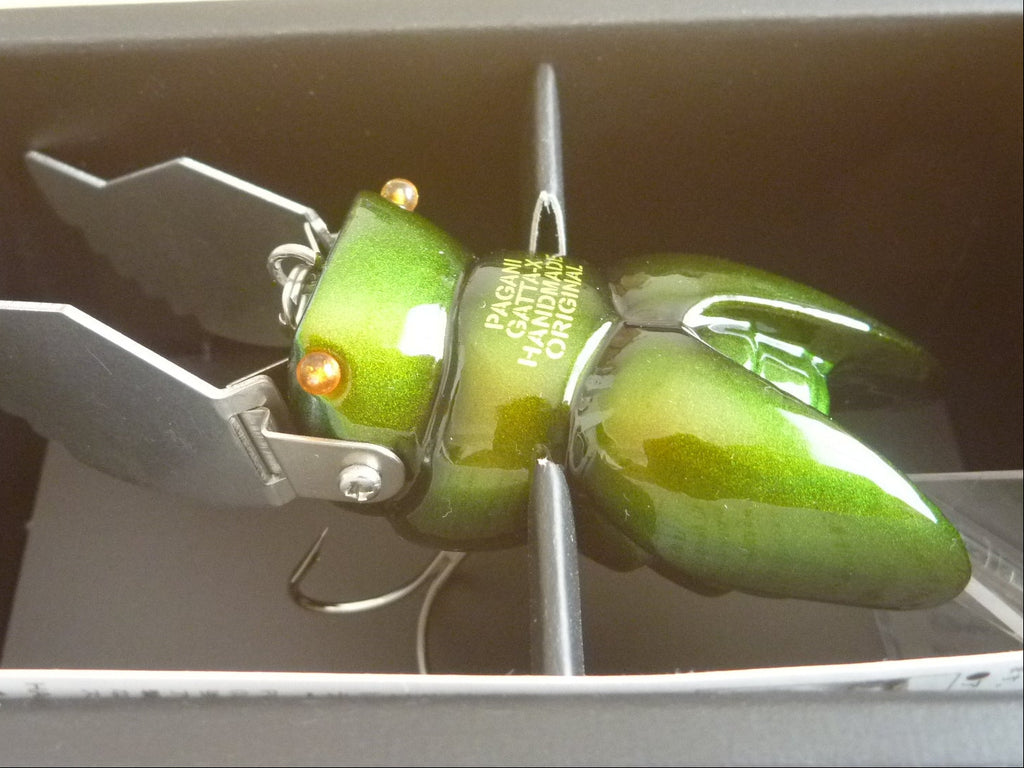 The Gatta-X TURBULENCE is an ultralight, plastic turbine that rotates irregularly and anomalously. It is the image of a winged bug gently flapping its lower wings. The Gatta-X TURBULENCE is effective when the surface of the water is too wavy for action with ordinary noisy plugs, or when topwater fishing on rivers with strong currents or in heavy inlets. The prop turbine attached to the plug allows the body of the plug to stabilize in rough water while the tail hovering (floating) in an intense slap dance. The wacky rotation of the prop turbine triggers reaction bites.