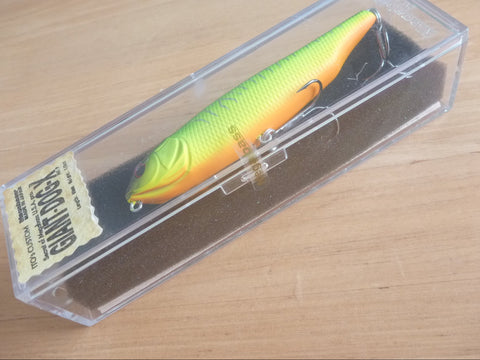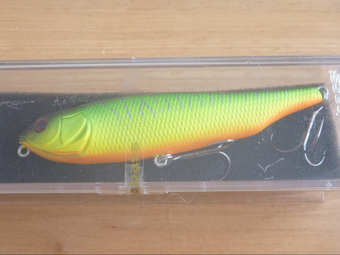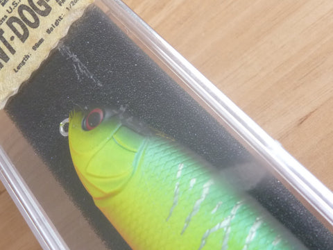 Just like the original DOG-X and DOG-X Jr., GIANT DOG-X is built to roll-walk. Roll-walking does two things. It pushes (displaces) more water and exposes the sides of the bait to the fish underneath. If bait simply skates left and right, it pushes the least amount of water and only its belly is visible to the fish below. That is why roll-walking is critical. At the same time with the high buoyancy and rather tall body design, GIANT DOG-X effectively eliminated the slow movement, the inherent problem with the larger baits. GIANT DOG-X‘s action is now controlled by a tungsten balancer.