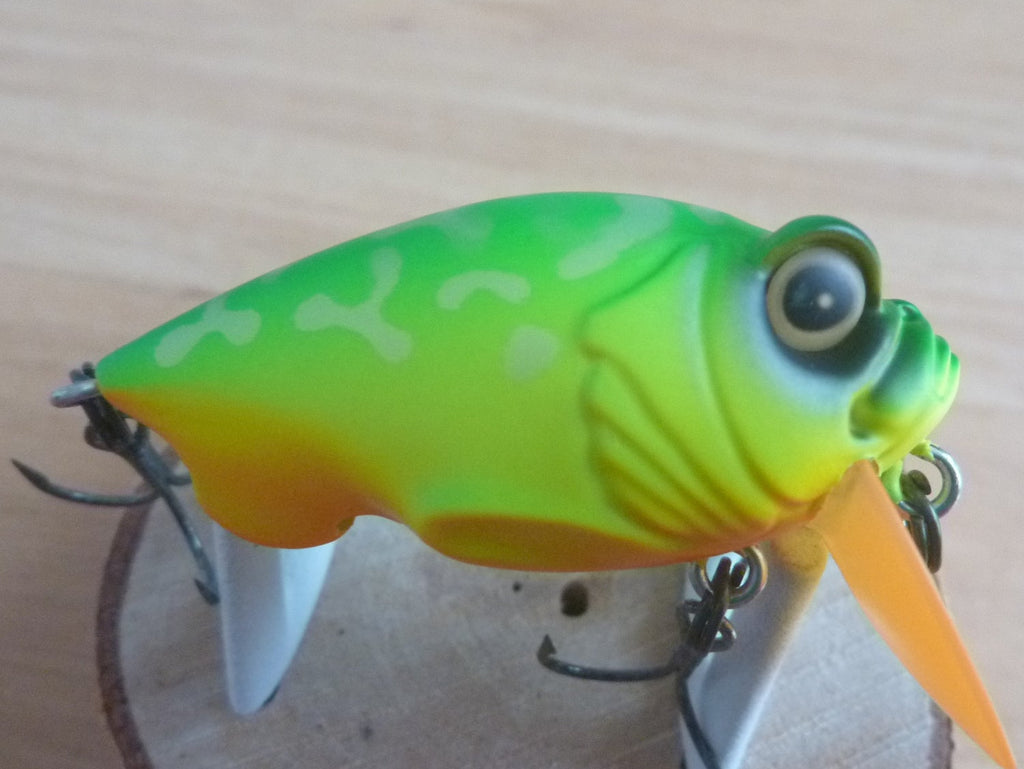 The Griffon has been designed to have a wider rollover angle than standard shallow crankbaits. The lip shape was developed based on shallow-bottom contact tests and structure avoidance tests, in order to keep the lip area as small as possible, without making the lip unnecessarily long and thick, and to provide a wide angle of rollover for shallow crankbaits. This lip is an original GRIFFON exclusive that also helps the snag-less effect of the front hook.