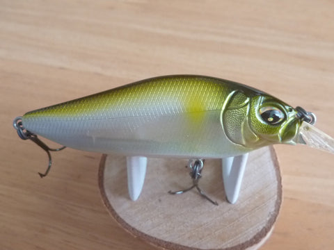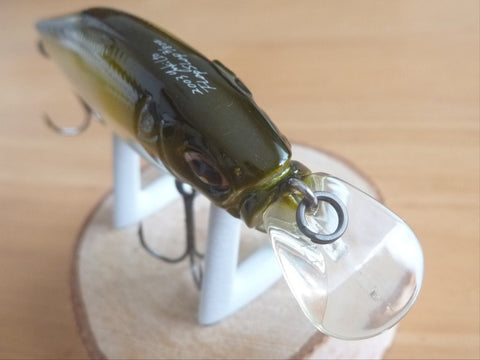 The FLAPSLAP is equipped with a shaft balancer mechanism, which makes it agitate the water while rolling violently from side to side like the VISION95 when reeling. The FLAPSLAP's built-in crankshaft produces a greater action than a straight shaft due to the oscillation of the shaft during roll. The FLAPSLAP's built-in crankshaft is designed to create a greater impact on the FLAPSLAP's unique wide and flat body.