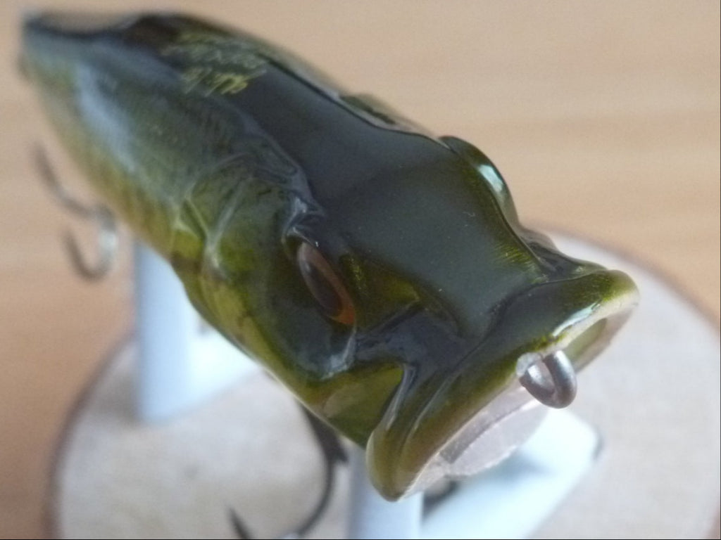 The POP X, despite its size, gives a decent presence to fish under the water. The specific gravity of wood is molded into the body resin itself. This is evident in the ripples that form around the POP X and in the trajectory of its action. The POP X is effective not only in the morning and evening, but also on clear lakes during the daytime in mid-summer.