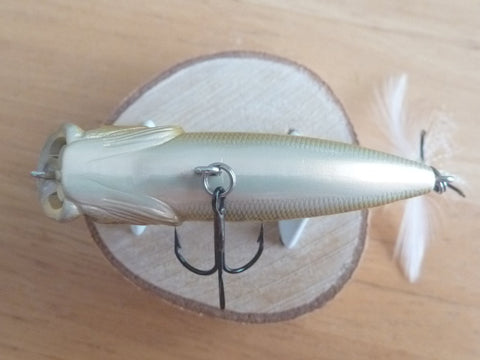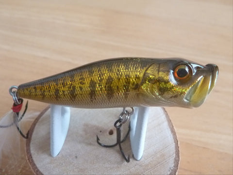 Introduced in 1996, POPX continues to dominate the high-end top-water bait markets of both Japan and the United States. Equipped with MEGABASS original SIDE-STEPPING BALANCER (PAT),POPX walks a rolling dog-walk unlike any other poppers, and the WATER DUCTS(PAT)which imitate the bubbly water coming out of gills and help create a natural"bio-sound", not an ordinary popping sound. POPX also spits, not splashes, quite a distance. Currently 16 colors are available."GG"stands for GUANIUM GHOST, the most shad-like finish, "PM"PEARL MICA(including SG CRACKED finish)and "GP"GUANIUM PHANTOM(including GP CRACKED finish),a see through phantom finish.