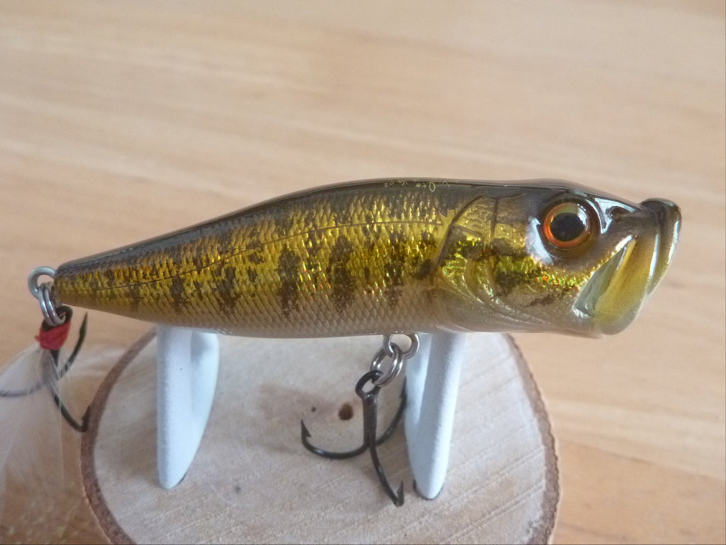 The POP X, despite its size, gives a decent presence to fish under the water. The specific gravity of wood is molded into the body resin itself. This is evident in the ripples that form around the POP X and in the trajectory of its action. The POP X is effective not only in the morning and evening, but also on clear lakes during the daytime in mid-summer.