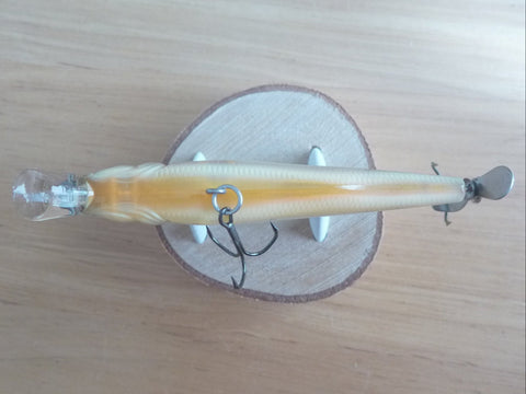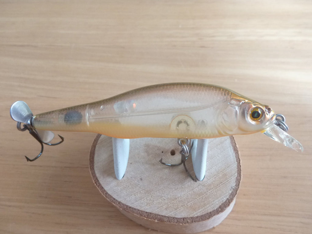 The prop darter's shovel-like lip is shaped to create a floating angle of the lure body in relation to the water surface. The shape is designed to respond to the slightest rod work or delicate retrieve. The lure grabs the water and splashes and darts without diving or floating too much. It creates an action that is effective on sub-surfaces. The humpback body is tall and has a shape suitable for rolling. This body form and the high center of gravity make the lure appeal to anglers with a violent action that has never been seen before.