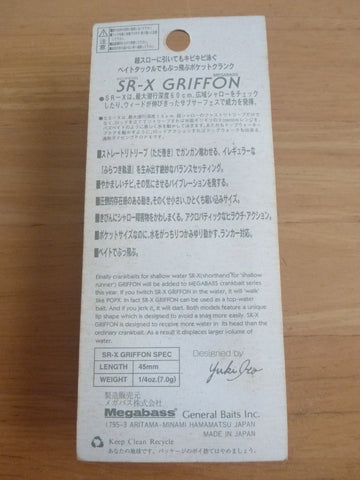 SR-X GRIFFON covers a range even lower than that of so-called ordinary shallow cranks. In other words, SR-X GRIFFON has been developed as a new generation shallow crank for multi-shallow range, which enables anglers to fish at depths from 0m to 1.3m in a wide range. The SR-X GRIFFON has an ultra C-class acrobatic action with amazing evasion ability when it comes into contact with structure, obstacles and the bottom, and it turns on shallow bass with a pinball-like painful movement. The SR-X GRIFFON has a much larger hitting surface than conventional crankbaits. Despite its small size, the SR-X GRIFFON moves a lot of water in the water and its "compact size" + "super impact" results are unrivaled.