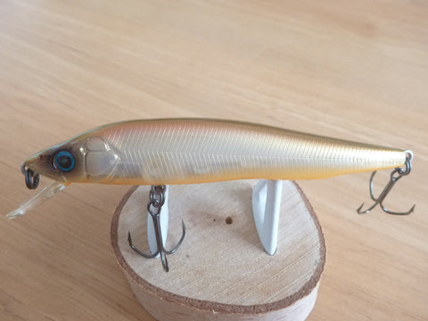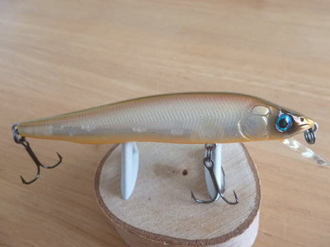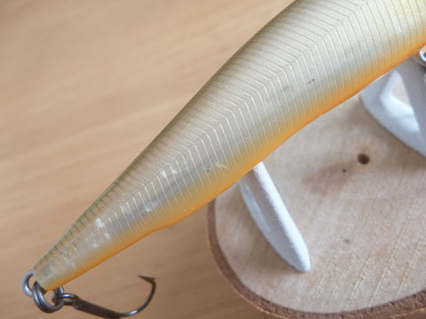 The VISION95 "Q-GO" is a 3.74in. long minnow meant for shallow water. The swimming action of this bait is controlled by a completely new balancer system called the SHAFT BALANCER SYSTEM(PAT.) Instead of a moving, round balancer, the one in the Q-GO is shaped and fixed at the lowest point along the body. The result is an astounding new type of rolling action. Since the shaft weight acts as kind of reverse pendulum (think of it upside-down), the whole body swings with the shaft as a pivot. Unlike a moving balancer, the shaft balancer does not require guiding structures, so it frees up the space inside the bait. This allows the Q-GO to have very high buoyancy along with highly responsive movement. That is why the Q-GO is at home with any retrieval speed. Slow or fast, the Q-GO will get you the responses you have been waiting for.
