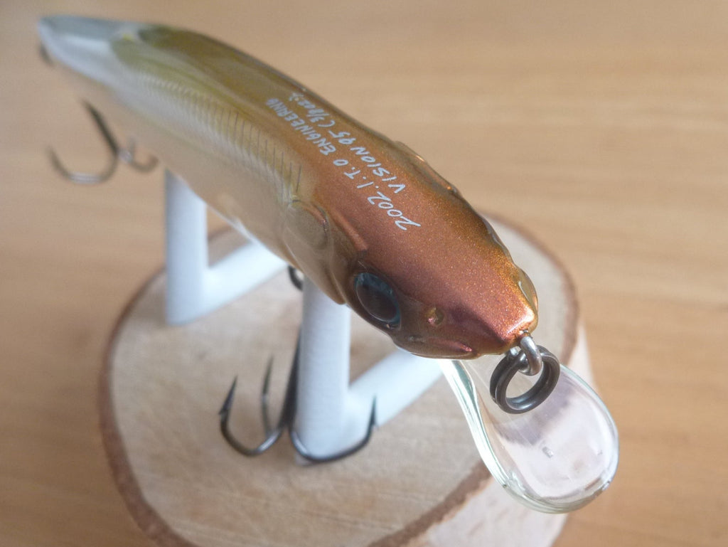 Simply by turning the handle of the reel, the VISION 95 produces a wonderful rolling action to catch fish. Also, when you stop the retrieve, the ultra-low center of gravity makes the VISION 95 wriggle and squirm as it regains its position. By simply turning the reel handle and stopping the lure in a series of stop-and-go movements, it creates a radical movement that further increases the chances of bites.