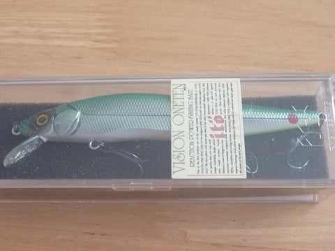 Introduced in the fall of 2000, the VISION ONETEN immediately captured the imagination of American anglers, setting a new standard for jerk baits. Designed by Yuki Ito for anglers in the United States, the ONETEN has emerged as the "go-to" jerk bait amongst touring pros, continuing to produce key fish and big checks from the Club level to the Bassmaster Classic. The profile, one-of-a-kind darting action, tungsten Multi-Way Moving Balancer System (PAT.) and hand-painted color patterns all contribute to the incredible fish-catching ability of the VISION ONETEN. The internal balancer system not only fuels the ONETEN's unparalleled action and huge flashes, but also allows it to cast like a bullet, far outpacing conventional jerk baits. This deadly package is finished off with three Megabass original sticky-sharp KATSUAGE OUT-BARB treble hooks, designed to increase hook-setting percentages when power-bait fishing. Crafted to generate results with a steady retrieve, traditional "jerk, jerk, pause," or trolling, the ONETEN responds to rod actions with unparalleled, life-like action. The one and only: VISION ONETEN.