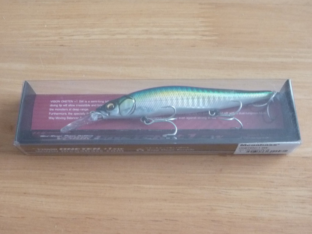 VISION ONETEN+1 SW is a long-bill jerkbait developed to capture the under-range range of 1m to 1.5m above the swim layer of the original ONETEN SW. The specially shaped diving lip allows the water current received by the lip to flow efficiently to the head of the body, creating a sharp, wide left-right darting action despite its long bill. The intense flickering flash from the edgy, flat-shaped body appeals to monsters in the deep range. The specially shaped long bill reduces aerodynamic drag when casting. The synergistic effect of the center-of-gravity shifting system with dual tungsten weights arranged in series provides long distance castability even in against winds.