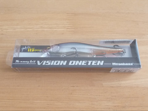 Introduced in the fall of 2000, the VISION ONETEN immediately captured the imagination of American anglers, setting a new standard for jerk baits. Designed by Yuki Ito for anglers in the United States, the ONETEN has emerged as the "go-to" jerk bait amongst touring pros, continuing to produce key fish and big checks from the Club level to the Bassmaster Classic. The profile, one-of-a-kind darting action, tungsten Multi-Way Moving Balancer System (PAT.) and hand-painted color patterns all contribute to the incredible fish-catching ability of the VISION ONETEN. The internal balancer system not only fuels the ONETEN's unparalleled action and huge flashes, but also allows it to cast like a bullet, far outpacing conventional jerk baits. This deadly package is finished off with three Megabass original sticky-sharp KATSUAGE OUT-BARB treble hooks, designed to increase hook-setting percentages when power-bait fishing. Crafted to generate results with a steady retrieve, traditional "jerk, jerk, pause," or trolling, the ONETEN responds to rod actions with unparalleled, life-like action. The one and only: VISION ONETEN.