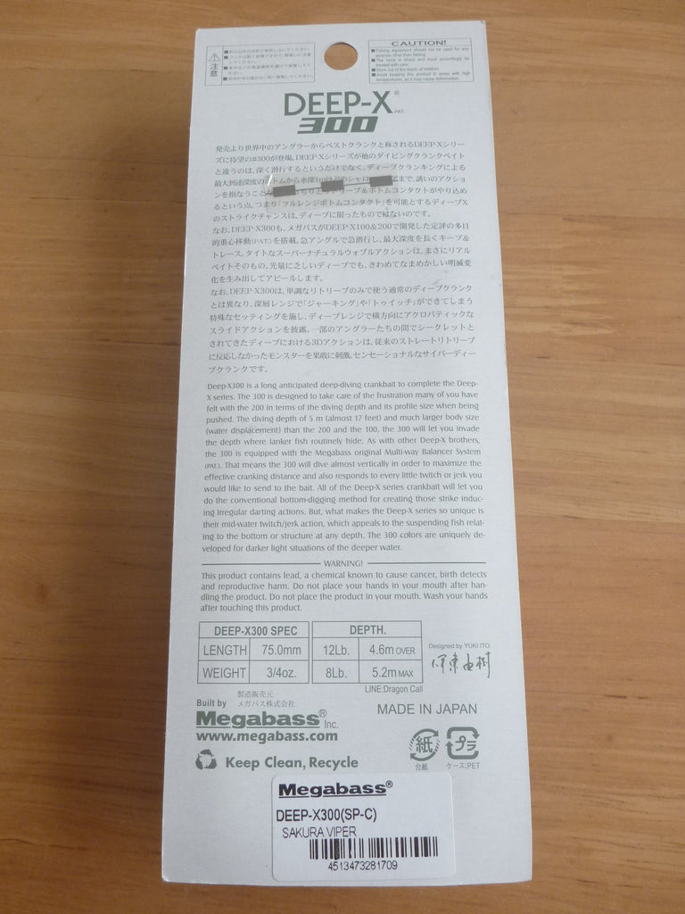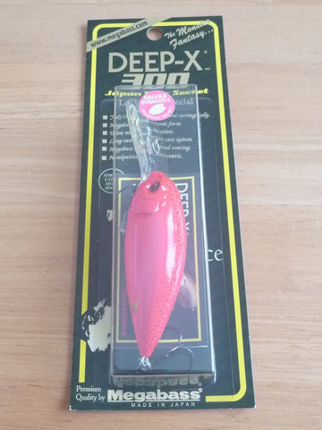 The DEEP-X300 is a long anticipated deep-diving crank bait that adds dimension to the DEEP-X series. With a diving depth of 5m (almost 17 feet) and a much larger body size than the 200 and the 100, the DEEP-X300 will let you invade the depths where lunker fish routinely hide. As with its other DEEP-X brothers, the 300 is equipped with the MULTI-WAY MOVING BALANCER SYSTEM(PAT.). That means the 300 will dive almost vertically in order to maximize effective cranking distance and will also respond to every little twitch or jerk you send to the bait. All of the DEEP-X series crank baits will allow for the conventional bottom-digging method for creating those strike-inducing irregular darting actions, but what makes the DEEP-X series so unique is their mid-water twitch/jerk action, which appeals to the fish at any depth. The 300's colors are uniquely developed for the lower light environment of deeper water.