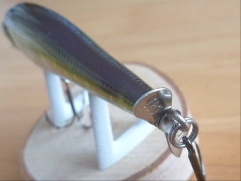 The prop darter's shovel-like lip is shaped to create a floating angle of the lure body in relation to the water surface. The shape is designed to respond to the slightest rod work or delicate retrieve. The lure grabs the water and splashes and darts without diving or floating too much. It creates an action that is effective on sub-surfaces. The humpback body is tall and has a shape suitable for rolling. This body form and the high center of gravity make the lure appeal to anglers with a violent action that has never been seen before.