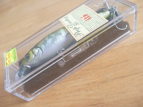 PROP DARTER 80 (X-80 PD) is something like top-water version of TRICK DARTER. The prop which was invented (PAT.P) just for this bait, is truly unique not simply because it is asymmetric but because of its lively swimming sound and its ability to spit back. As for the body, the inside structure has been completely overhauled and redesigned for a new set of objectives. As a result it leans to left and right when retrieved. It looks like a snake's swimming track. PROP DARTER has a lip, which tries to dive. Yet it cannot dive. This struggle adds to PROP DARTER's unique bio-sound and the surface action you have never seen before.