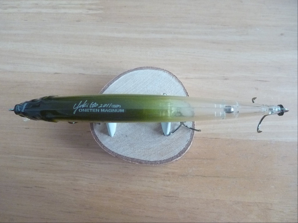 The ONETEN Magnum is an upsized version of the Vision ONETEN, which has achieved amazing results in the USA tournament scene. It has been designed to eliminate the unevenness and turbulence of the swimming action caused by conventional movable weights. Compared to conventional large minnows, the new model has a setting that dramatically improves swimming response. On a slow retrieve, it produces a bait fish swimming unprotected, and on a fast retrieve, it produces a sharp, high-pitch rolling action. When the retrieve is stopped for a moment, the lure's body trembles and wriggles to provoke a bite. It will ignite the fighting instincts of spooky monster bass that have given up on jerk baits in tough conditions during low water temperatures. We hope you will experience the power and hidden potency of the ONETEN Magnum.