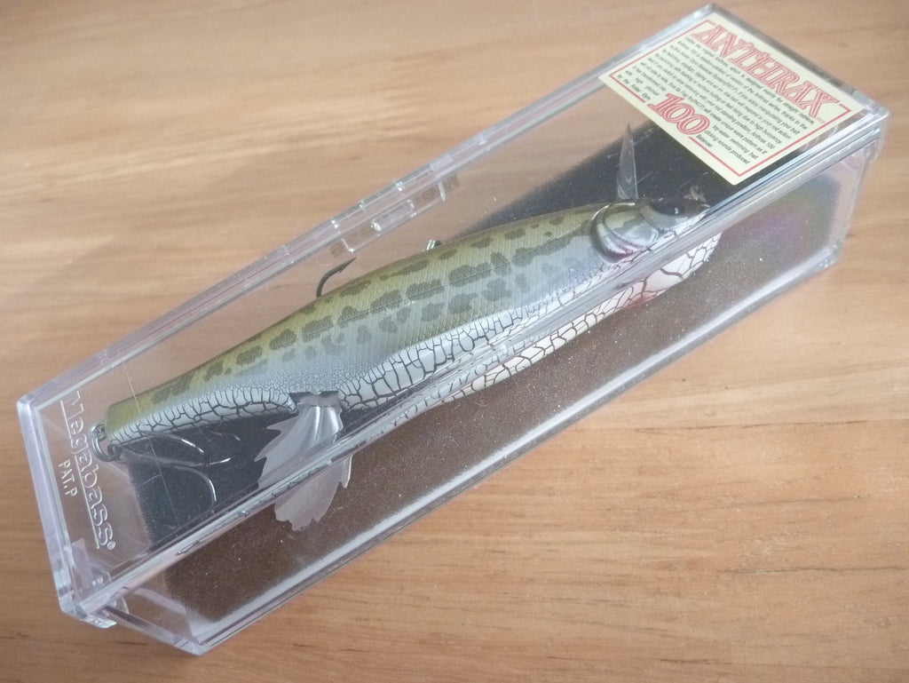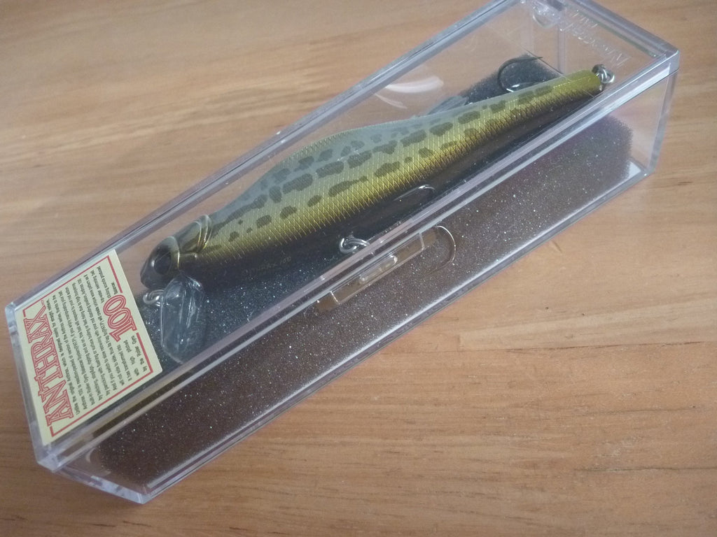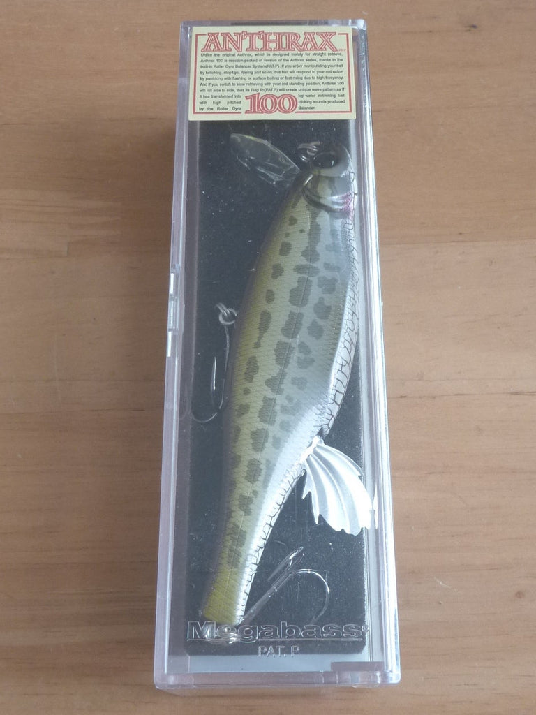 The Anthrax 100 uses a roller gyro balancer system to produce a variety of multiple actions. While the original Anthrax was set up mainly for straight retrieve use, the Anthrax 100 is set up to be more responsive to rod work. When twitched in succession, it dances brilliantly in the water and produces a deadly bait panic action with flashing. With its high float body, it dashes towards the surface and rises up with a thud on the water when retrieved. Stop & Go and short ripping will produce boils. When retrieved with the rod in a standing position, it swims while leaving ripples on the water surface. On a slow retrieve, the ball weight displaced on the roller shaft produces an unconventional super rolling action with a regulated and high-pitched clicking sound. At this time, the movable flap fins on its abdomen tingle from side to side, cutting through the water current and appealing with its own triangular waves. The lure's novelty and natural dynamics make it ideal for catching not only bass, but also a variety of fish eaters such as seabass in mud flats and rivers. Roller Gyro Balancer System. Collapsing movable flap fins mildly agitate the water surface. Realistic bait action never seen before. It floats and catches neutral fish.