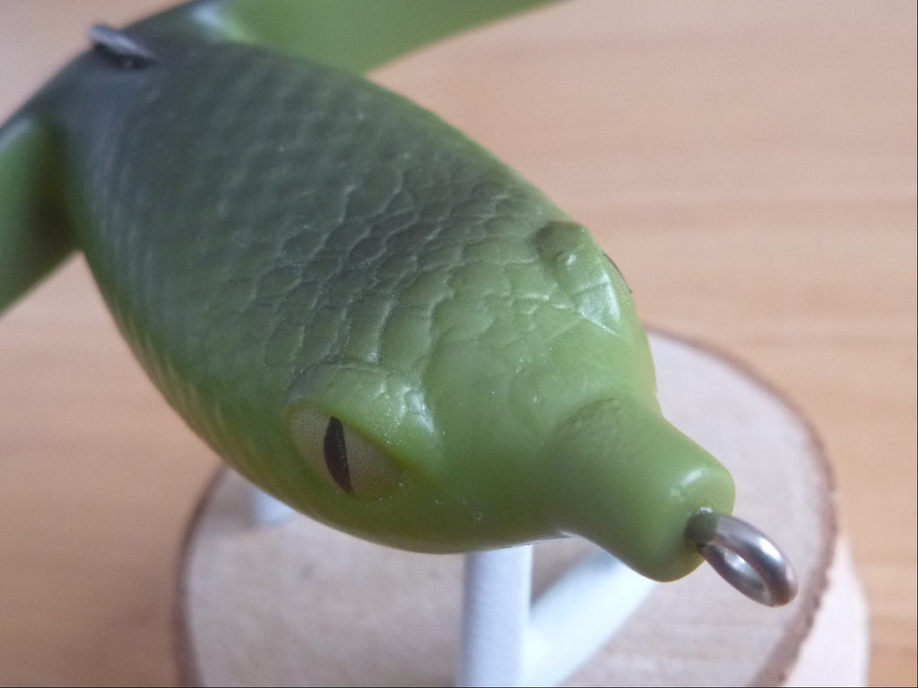 The unique crawling action swims on the surface of the water as if it were a noisy plug, and brings a unique ripple and sound only Basirisky can produce.